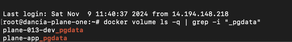 docker volume ls -q | grep -i "_pgdata", you might see something like: